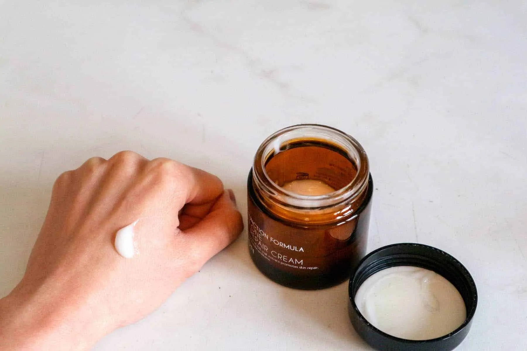 Die Creme enthält 92% ‘snail extract’ also Schneckenschleim. Dieser ist besonders gut für die Regeneration der Haut und um Aknenarben und Pigmentflecken zu reduzieren.